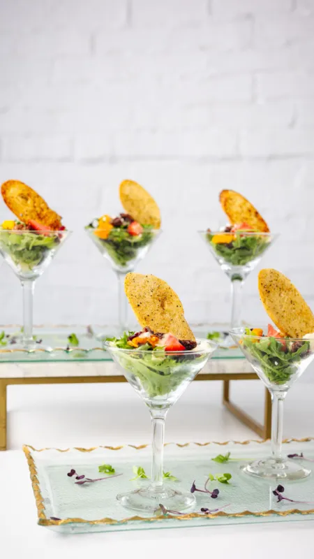Imagine guests at a corporate party stepping up to a champagne wall, plucking a sparkling glass from a lush green backdrop that feels like a gallery installation. Or picture the playful crudité shooters suspended from a sleek crane, creating a whimsical forest of fresh vegetables and creamy dip hovering within reach. These displays go far beyond sustenance - they’re curated performances that blend artistry, flavor, and spectacle.