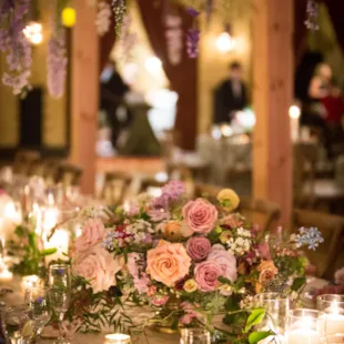 Lanterns are a great option for outdoor events or rustic-themed events, like at The Heirloom. They come in many sizes and shapes and can be filled with candles or fairy lights to create a beautiful illuminating centerpiece. They can also be hung from the ceiling or trees to create a magical ambiance.