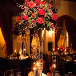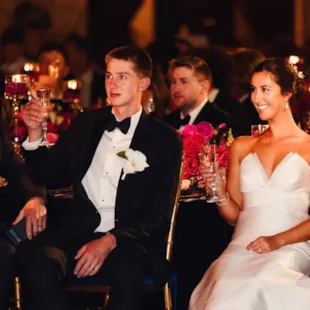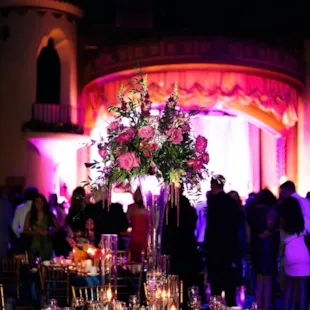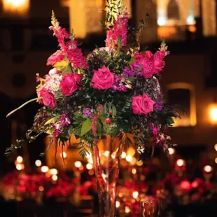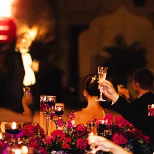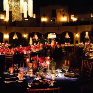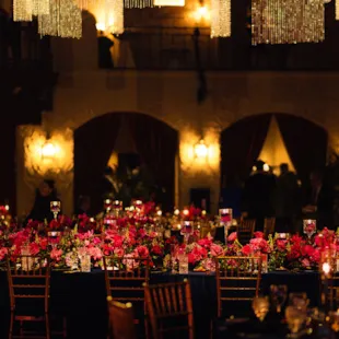 As the sun began to set, guests were invited to take their seats for dinner. As they found their tables, it was impossible not to miss the impeccable attention to detail. The centerpieces were a visual delight, consisting of aromatic pink florals and candles of varying heights. They added a touch of romance and sophistication to the dining experience, creating an atmosphere that was both enchanting and inviting.