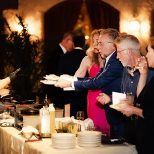 To set the mood for an extended evening of celebration, the couple and their guests danced to the electrifying tunes of the band Sarlas. The music filled the ballroom, creating an atmosphere of joy and festivity. As the night unfolded, guests were treated to late-night snacks of "Nick's Style" Stromboli and crispy french fries served in branded paper cups. It was the needed bite to fuel the dancing and festivities that continued into the night.