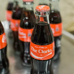 The reception included several fun touches, including cocktail napkins featuring their “fur baby,” Roscoe, and a commemorative “Share a Coke with the Clarks” bottle for each guest.