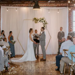 The ceremony was a heartfelt affair, with every detail meticulously planned to reflect the couple’s unique style and love story. Adding a whimsical touch to the ceremony was the couple’s specialty champagne wall, where guests enjoyed a delightful Cotton Candy Champagne drink as they took their seat.