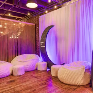 Guests could take a break from dancing in comfy Lovesac chairs or satisfy their sweet tooth at the disco-balled dessert display complete with Fearless Fondue, Butterfly adorned cheesecake, and Taylor's Chai Sugar Cookies.