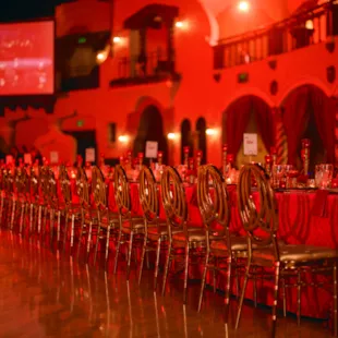The Cabaret style is similar to banquet seating except that one side of the table doesn’t have chairs. This is a great option if you would like your event to offer the social benefits that round tables provide while ensuring that your guests have a clear view of the presentation area. This is popular for non-profit and corporate events.