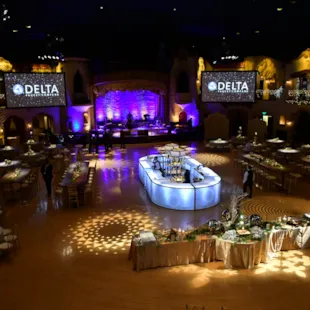The lounge style is a popular trend in events as it offers creative opportunities with layout and décor. Utilizing different types of furniture like couches, accent chairs, and coffee tables, a lounge set-up creates a sense of space within a large venue and gives the guests a more comfortable, informal place to mingle and relax. Our venues, like The Crane Bay, have furniture options in addition to standard tables and chairs, but if your venue does not offer these amenities in-house, renting from another company may be an option.