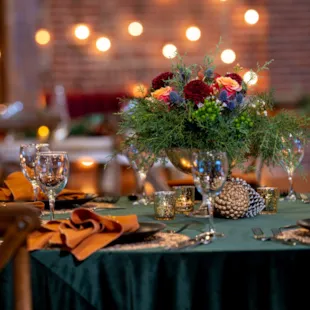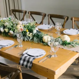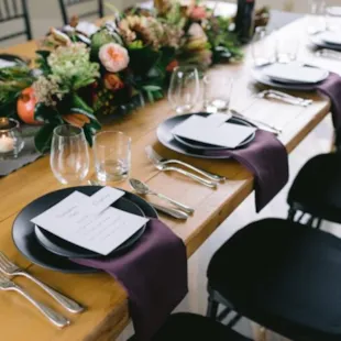 4. Arrange for Florals. Floral arrangements elevate the design of the table in the best way. Let the professionals, such as Rusted Window, create a centerpiece that will keep your guests talking.