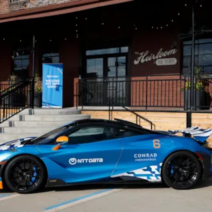The evening included a Q&A session with drivers Nolan Siegel and Tony Kanaan, two McLarens parked at the entrance for photo ops, and up-close views of TK’s memorabilia and a "Baby Borg" trophy. Guests enjoyed passed hors d’oeuvres, a gourmet multi-course dinner, and wine service at tables dressed in Navy Shantung Supernova linens and Vineyard Crossback Chairs. Two signature cocktails—Papaya Punch and Brickyard Breeze—added a custom flair to the bar. A photo booth added a lighthearted and interactive moment, rounding out a night of motorsports excitement and hospitality excellence.