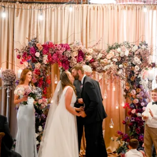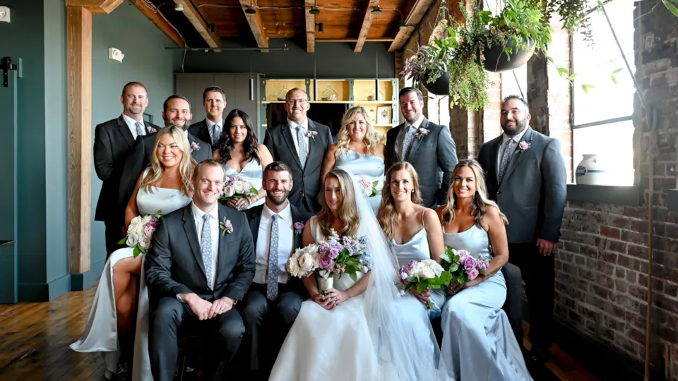 Courtney Rogers and Matthew Bono were married on August 27, 2022 at The Heirloom at N.K. Hurst in downtown Indianapolis. The couple met shortly before the world shut down in 2020 and tied the knot in front of 160 of their closest family and friends, including all eight of their nephews who served as junior groomsmen. Guests gathered to witness their union against the backdrop of floating candles, lush flowers, and the rustic charm of The Heirloom.