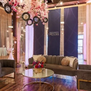 How to Utilize This Trend: Use statement pieces like oversized floral arrangements, colorful backdrops, or hanging installations. Incorporate bold color schemes and mix-and-match textiles for table settings. Use lighting to highlight focal points and enhance the drama. For inspiration, check out how Crystal brought this bold, maximalist style to life at The Heirloom for our SWIFT + SHIMMER Pre-Party Event.