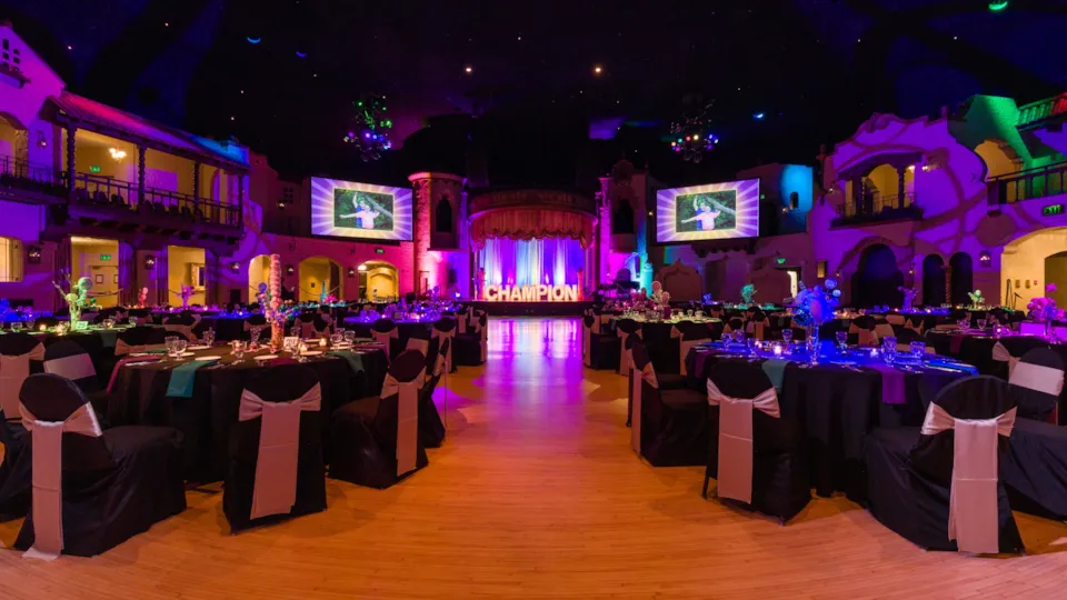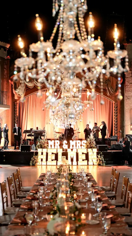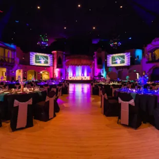 Crystal proudly partners with Markey’s, our exclusive audio visual and lighting provider. Their team understands the technical requirements of our venues and collaborates closely with Crystal to design lighting and sound solutions that enhance the atmosphere without overwhelming the space. Whether it’s dramatic pin spots at the Indiana Roof Ballroom, polished presentation on screens at The Crane Bay Event Center, or uplights along drapery at The Heirloom, this partnership ensures production feels intentional and seamless for guests.