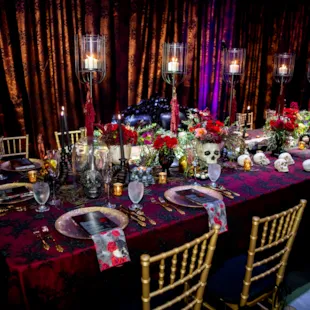 On October 22, 2022, the couple and their team executed a once-in-a-lifetime experience for their family and friends at The Crane Bay Event Center, which was transformed into something resembling a spooky movie set. Guests arrived in costume and quickly got into the spirit of things; posing for photos and enjoying the incredibly detailed event production. “To say our wedding was unforgettable is an understatement,” says Craig.