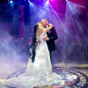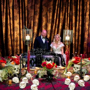When Jeannie Dickerson and Craig Sterler, owners of events company Sterler Productions, began planning their wedding, they joked about inviting their friends and family to a Halloween party and surprising everyone by getting married in the middle of it. However, realizing that some people (like the best man) might not attend an event simply billed as just a Halloween costume party, the joke became a reality when they began designing the most elaborate Halloween costume wedding they could think of.