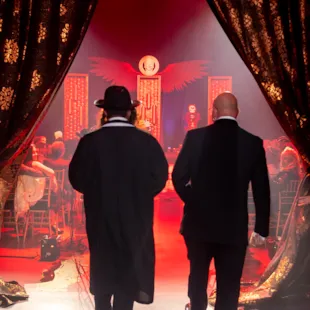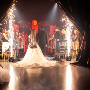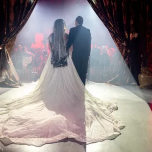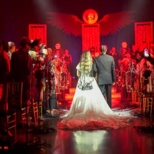 They started collecting props and decor items and together they designed every experience their guests would have on their wedding day. Experiences including the groom and bridal party entering to the classic instrumentals of Metallica, the 49 lighting cues for Jeannie’s entrance and having a fake Rabbi start performing the service only to have Elvis stand up and object to the wedding.