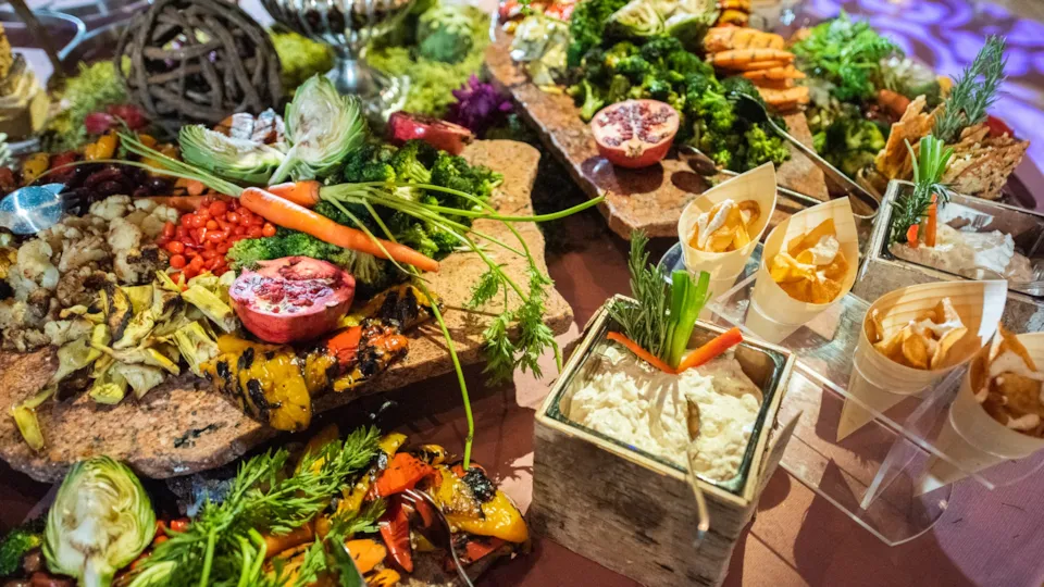 Popular wellness-forward catering styles include plant-forward menus, locally-sourced ingredients, Mediterranean-inspired dishes, lean proteins paired with vibrant vegetables, and globally influenced flavors that rely on spices and herbs rather than heavy sauces. These menus translate beautifully across event styles, from seated dinners to cocktail receptions.